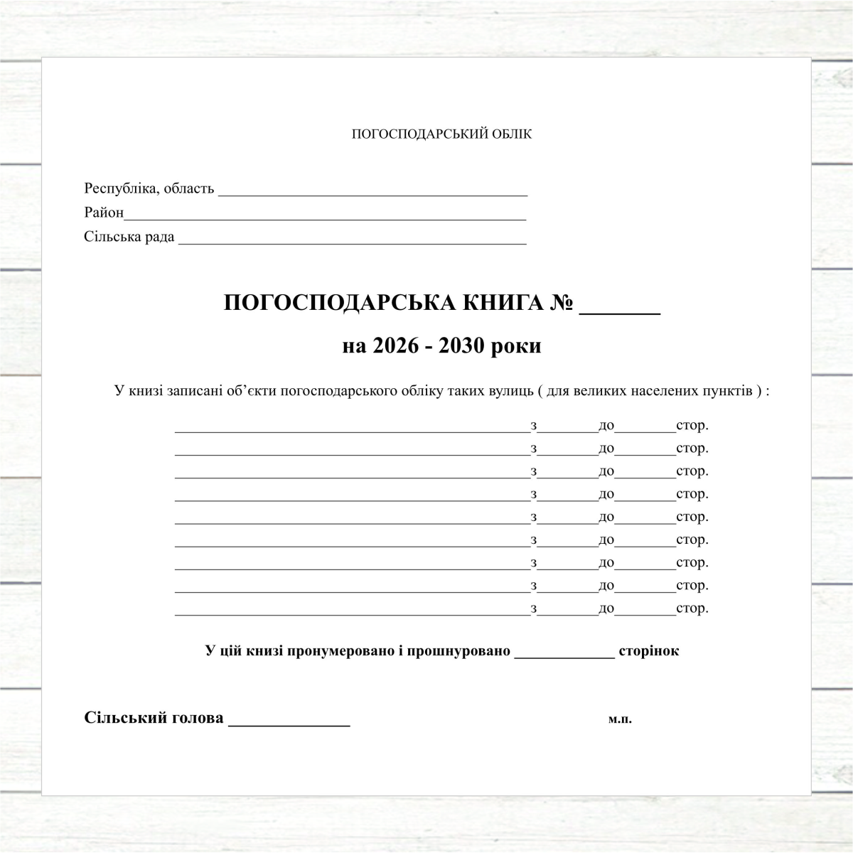 Погосподарська книга 2026-2030 рр (Офсет, 297*297, тв. пал.100 арк.)